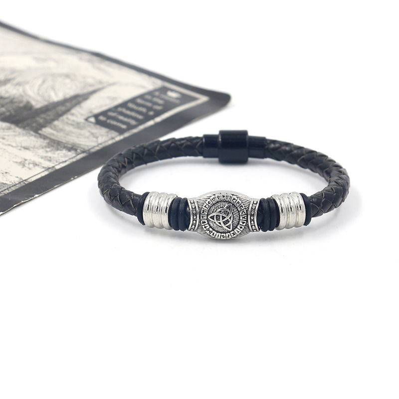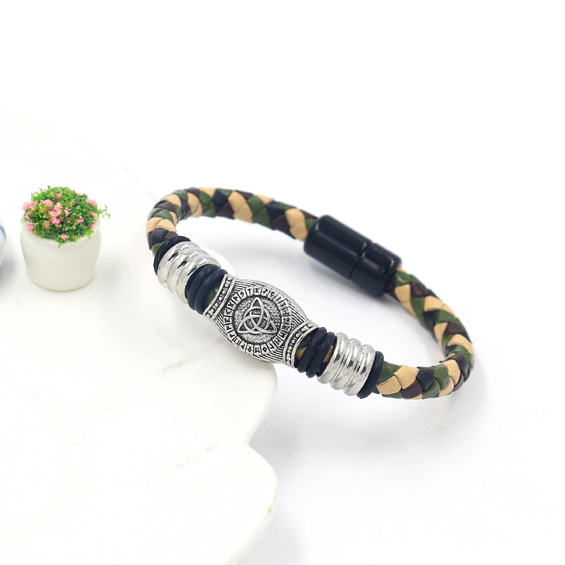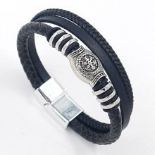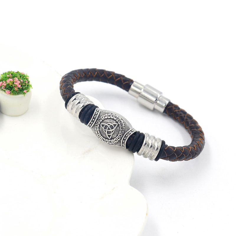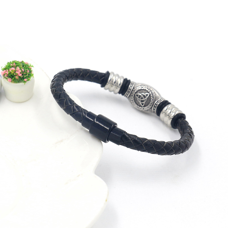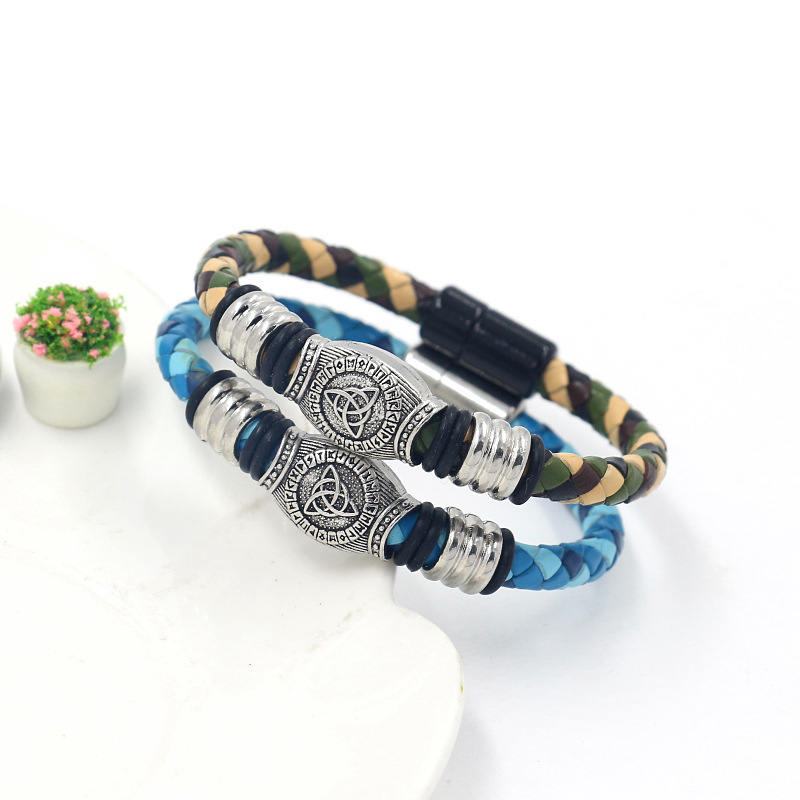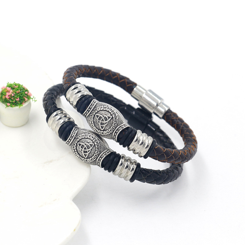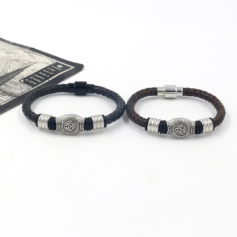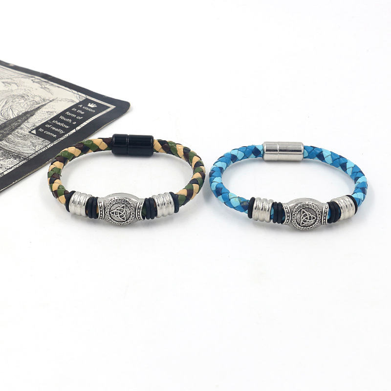 Alloy Magnetic Buckle Leather Rope Hand Weaving Bracelet
