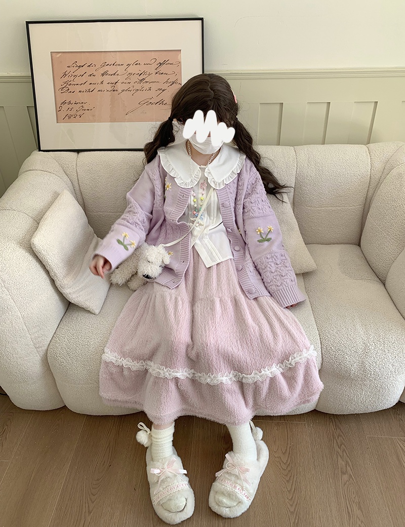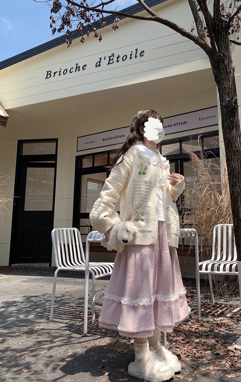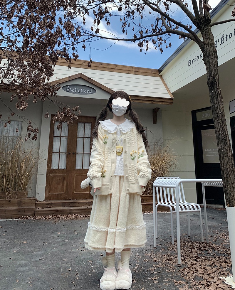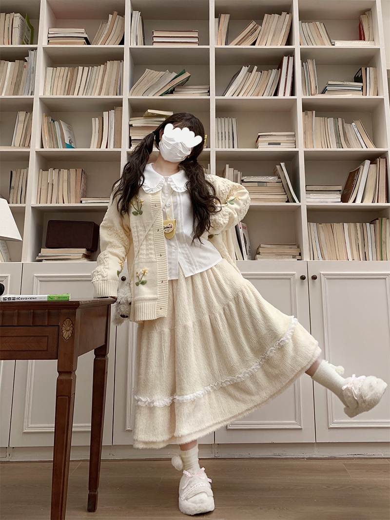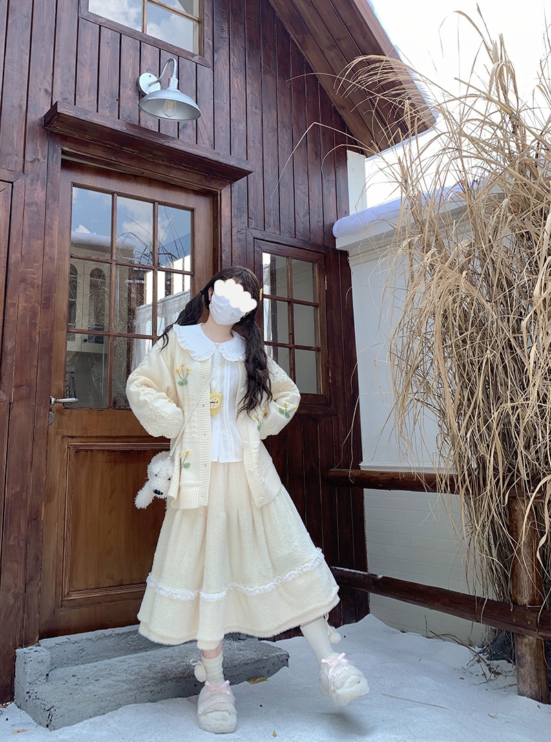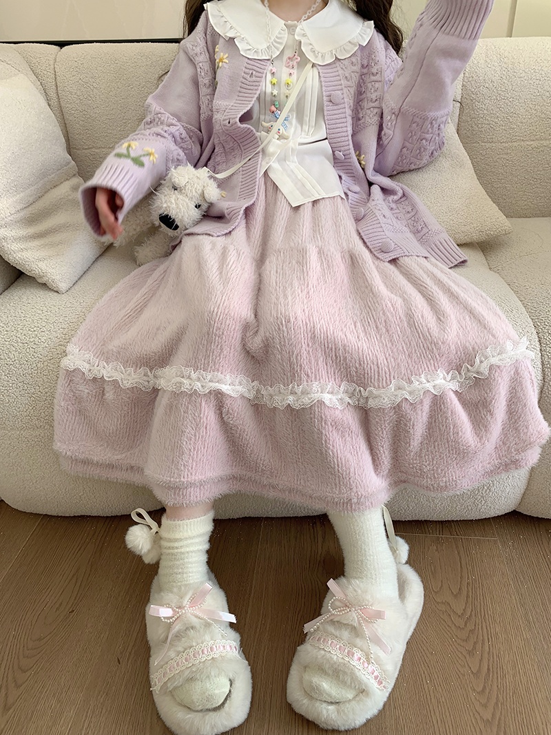 Plush Big Swing Mid-length High Waist Elastic Skirt